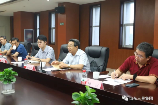 7月20日,山東省糧食行業(yè)協(xié)會副會長宋安君、協(xié)會秘書長徐興一行來山東三星集團(tuán)調(diào)研。濱州市糧食和物資儲備局黨組成員、四級調(diào)研員楊立新,濱州市糧食行業(yè)協(xié)會會長劉俊軍參加活動。山東三星集團(tuán)黨總支書記、老董事長王明峰,集團(tuán)綜合管理部總監(jiān)韓延庭、規(guī)劃發(fā)展部總監(jiān)陳劍飛接待調(diào)研領(lǐng)導(dǎo)。