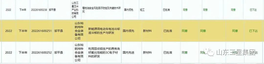 日前,山東省工業(yè)和信息化廳公布“2022年山東省第二批技術(shù)創(chuàng)新項(xiàng)目計(jì)劃”名單。山東三星集團(tuán)“植物油安全風(fēng)險因子防控及關(guān)鍵技術(shù)研究”“新能源用電動車電池冷卻液冷板的生產(chǎn)與研發(fā)”“利用回收鋁生產(chǎn)的具有良好氧化性能的3C電子材料的研發(fā)”三大項(xiàng)目成功入選。至此,該集團(tuán)已有11個項(xiàng)目入選省2022年技術(shù)創(chuàng)新項(xiàng)目計(jì)劃,技術(shù)成果均達(dá)到國內(nèi)領(lǐng)先水平。