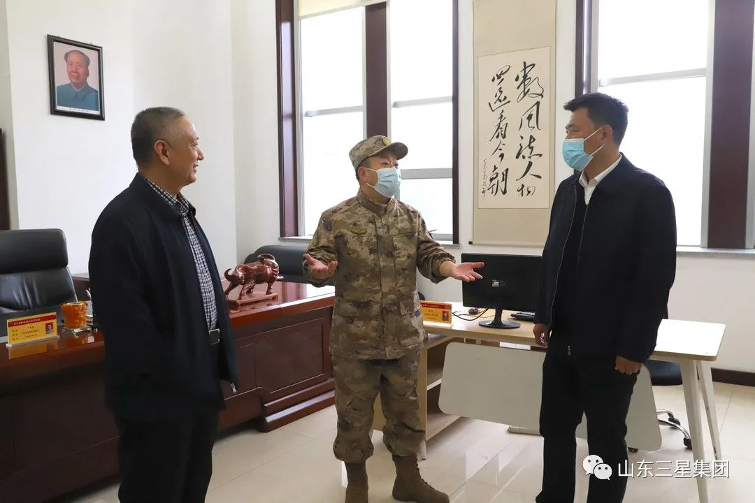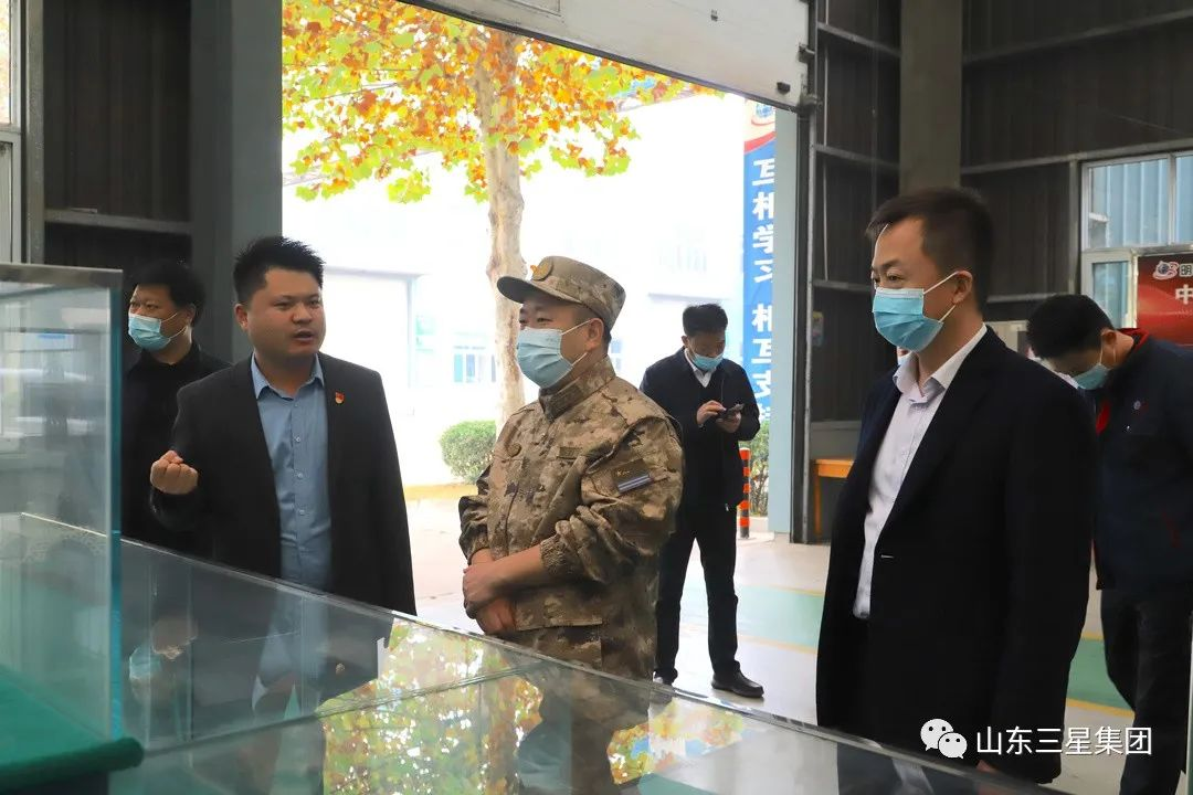 11月10日,鄒平市委常委、人武部部長胡燕龍來山東三星集團(tuán)參觀調(diào)研,韓店鎮(zhèn)黨委副書記、鎮(zhèn)長魏傳梁參加活動(dòng)。山東三星集團(tuán)黨總支書記王明峰、綜合管理部總監(jiān)韓延庭接待調(diào)研領(lǐng)導(dǎo)一行。