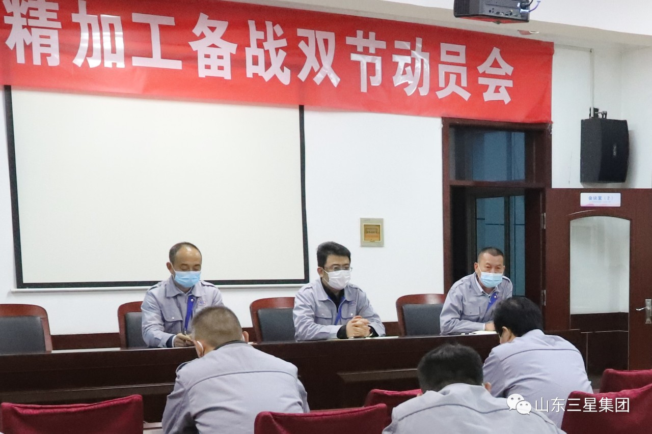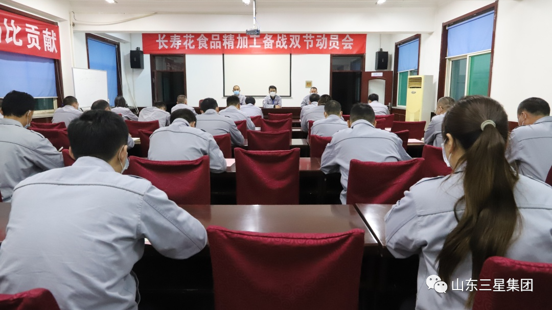 元旦春節(jié)雙節(jié)將近,為進(jìn)一步加大生產(chǎn)、提升效能,保質(zhì)保量完成全年任務(wù)目標(biāo),11月16日,長(zhǎng)壽花食品精加工事業(yè)部召開備戰(zhàn)“雙節(jié)”動(dòng)員大會(huì)。山東三星集團(tuán)企管部經(jīng)理程士警,長(zhǎng)壽花食品副總經(jīng)理張恒、生產(chǎn)總監(jiān)霍光彬及公司生產(chǎn)、銷售、儲(chǔ)運(yùn)、設(shè)備、安全部門負(fù)責(zé)人參加會(huì)議。