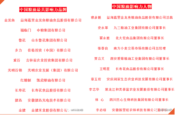 12月10日,第十二屆中國(guó)糧油榜開(kāi)榜。本屆榜單共有100多個(gè)品牌、企業(yè)上榜分獲榮譽(yù),10位企業(yè)家獲“影響力人物”殊榮。憑借來(lái)自推動(dòng)力、創(chuàng)新力、拓展力、影響力等方面的綜合優(yōu)勢(shì)和優(yōu)秀指標(biāo),長(zhǎng)壽花食品榮獲中國(guó)糧油最具影響力品牌榮譽(yù)稱(chēng)號(hào),長(zhǎng)壽花食品董事長(zhǎng)王明星獲評(píng)中國(guó)糧油影響力人物。