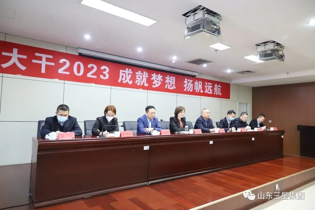 1月30日,山東三星集團(tuán)“大干2023 成就夢(mèng)想 揚(yáng)帆遠(yuǎn)航”主題動(dòng)員大會(huì)召開(kāi)。會(huì)議深刻貫徹濱州市“大干2023”重點(diǎn)工作動(dòng)員大會(huì)、鄒平市“攻堅(jiān)2023”重點(diǎn)工作暨“成就企業(yè)家夢(mèng)想行動(dòng)”動(dòng)員大會(huì)會(huì)議精神,動(dòng)員集團(tuán)上下堅(jiān)定“奮斗創(chuàng)贏、效益至上”工作總基調(diào),凝聚“一切以效益、利潤(rùn)為先”的思想共識(shí),振奮精神、真抓實(shí)干,共同掀起2023三星“大干快上 創(chuàng)新高效”奮進(jìn)浪潮。山東三星集團(tuán)董事長(zhǎng)、總裁王亞群,集團(tuán)董事會(huì)成員及各單位、各部門(mén)主要生產(chǎn)經(jīng)營(yíng)負(fù)責(zé)人出席會(huì)議。