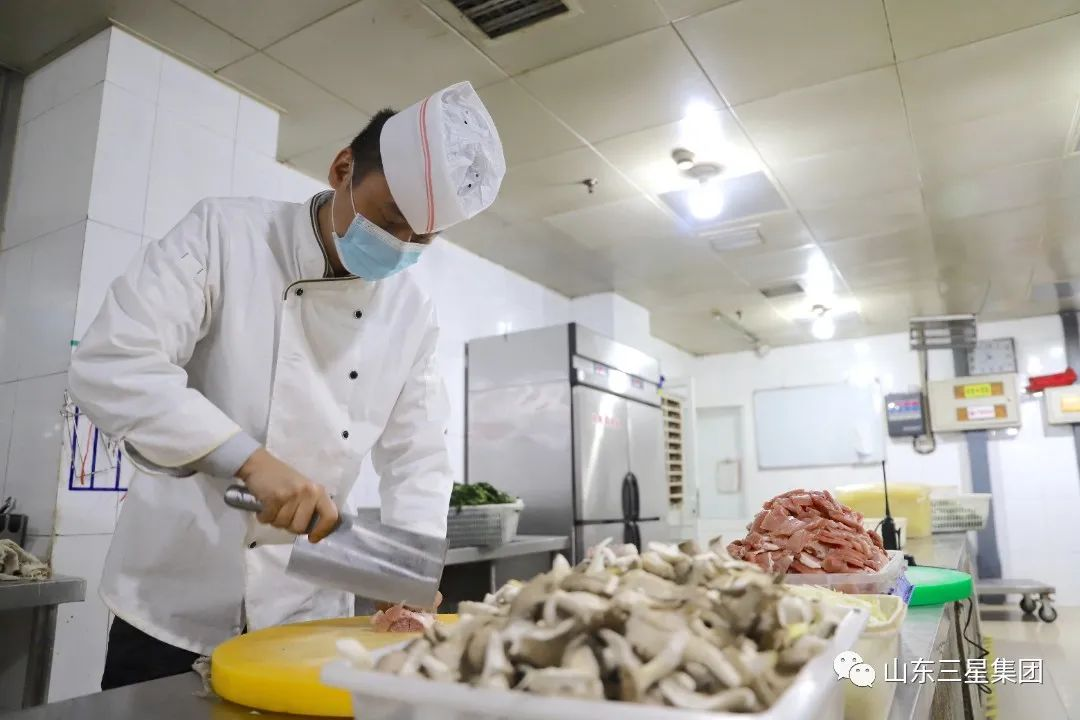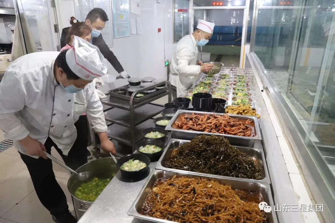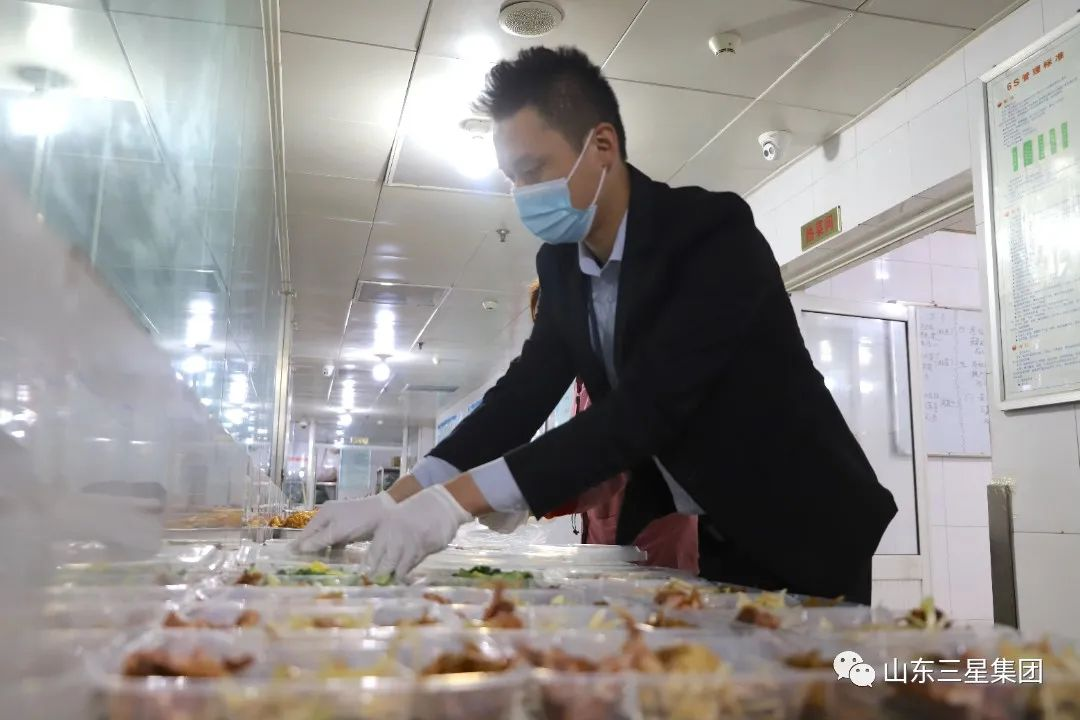 11月下旬,鄒平疫情散發(fā),山東三星集團(tuán)總部150余名干部員工緊急趕赴公司,開啟24小時駐廠模式。此時此刻,穩(wěn)產(chǎn)保供是重中之重,保障駐廠人員的三餐供應(yīng)也是首要任務(wù)。趙龍帶領(lǐng)團(tuán)隊(duì)快速盤點(diǎn)儲存食材,聯(lián)絡(luò)供貨渠道,做好細(xì)致分工責(zé)任落實(shí)……一切工作按部就班開展起來,150名干部員工也過上了“早餐蛋奶充足 午晚餐葷素管夠”的駐廠生活。