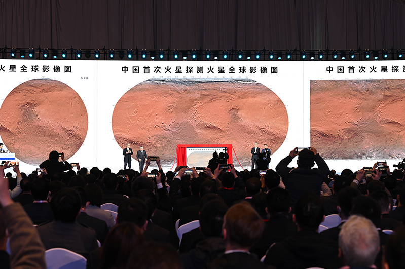 啟動(dòng)儀式上,國(guó)家航天局、中國(guó)科學(xué)院聯(lián)合發(fā)布中國(guó)首次火星探測(cè)火星全球影像圖;深空探測(cè)全國(guó)重點(diǎn)實(shí)驗(yàn)室及中國(guó)科學(xué)技術(shù)大學(xué)“深空探測(cè)學(xué)院”正式掛牌;鵲橋通導(dǎo)技術(shù)試驗(yàn)星正式命名為“天都一號(hào)”“天都二號(hào)”。