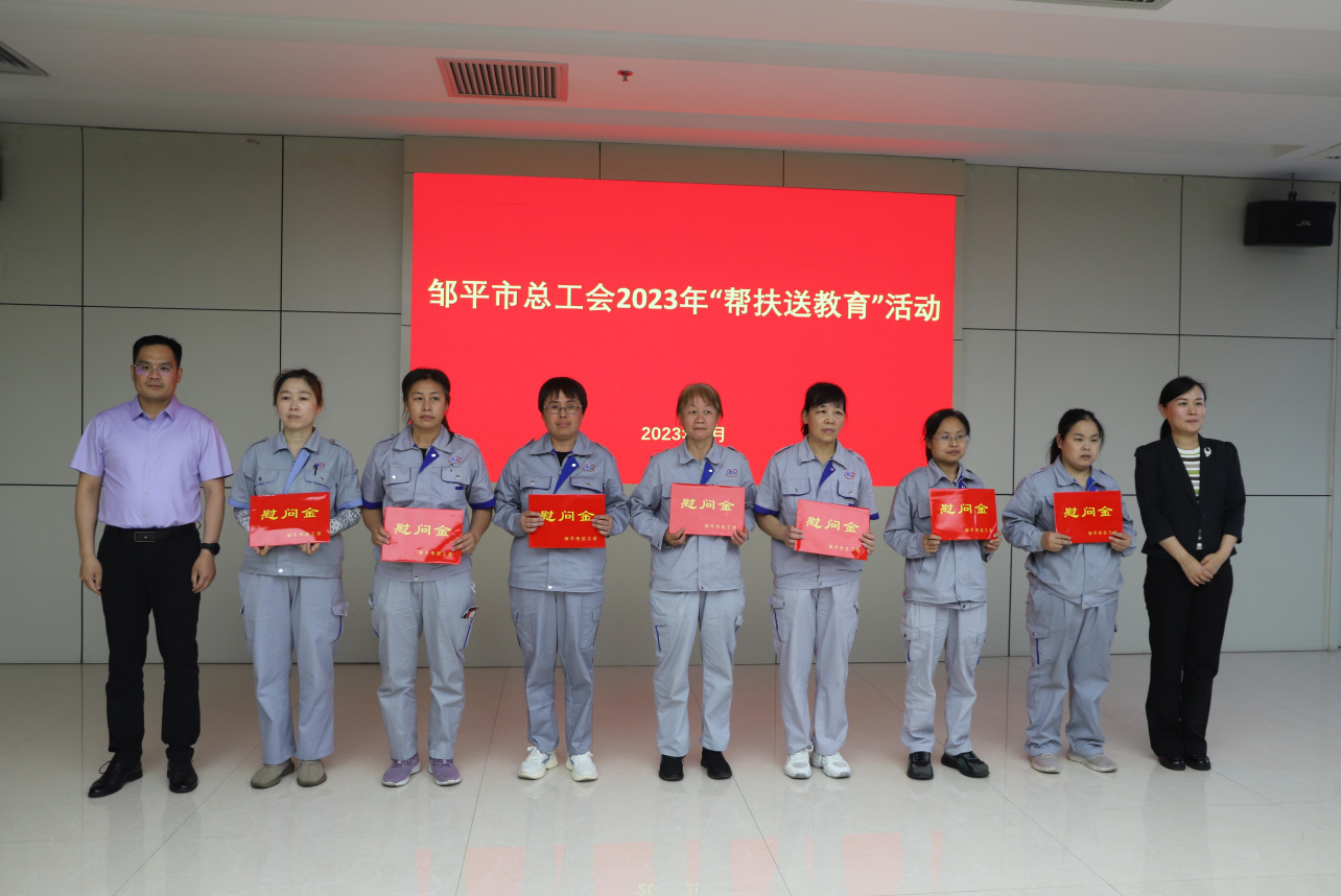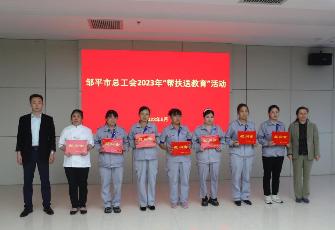5月29日,鄒平市總工會來山東三星集團開展“幫扶送教育”活動。鄒平市人大常委會副主任、總工會主席韓穎,市總工會黨組書記、副主席王萌;山東三星集團副總經(jīng)理、工會主席韓延庭,人力資源部部長潘來偉參加活動。