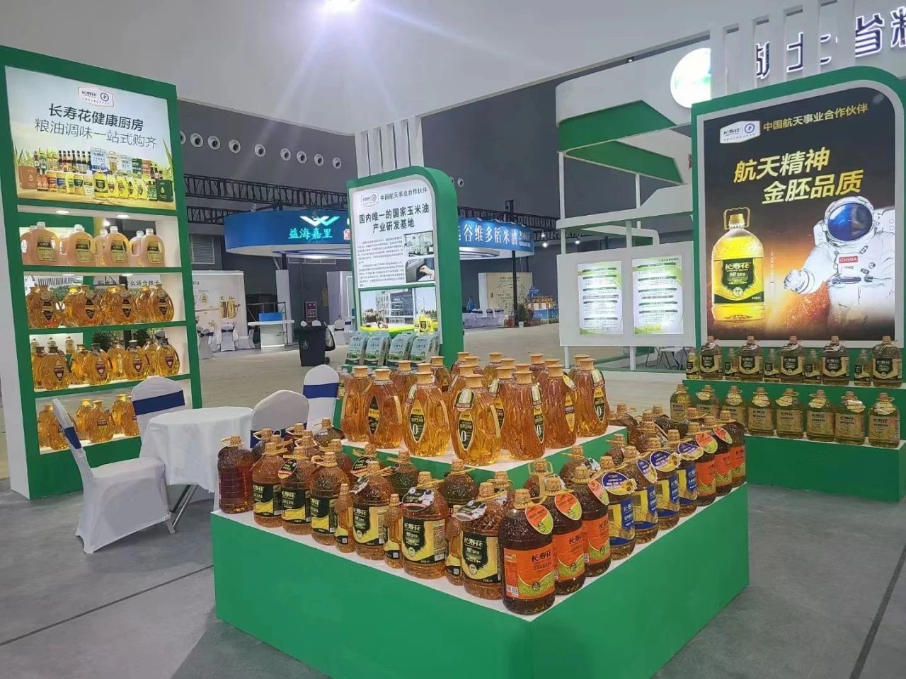 展會(huì)期間,長(zhǎng)壽花食品攜旗下高端產(chǎn)品,長(zhǎng)壽花二酯系列食用油、濃香玉米油、零反式脂肪高養(yǎng)玉米油、金胚至尊玉米油、高谷維稻米油、金胚玉米油、花生油、葵花籽油等系列食用油產(chǎn)品及長(zhǎng)壽花糧食產(chǎn)品亮相本次展會(huì)。