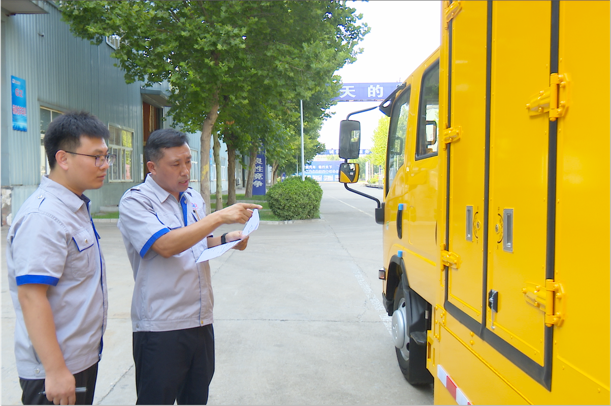 機械公司新型輕量化廂車前,技術總監(jiān)韓文來(右)向新員工孫恒杰重點講述新產(chǎn)品的性能指標及有關事項,手把手的教授,心與心的溝通,于言傳身教中,傳遞綠色低碳使命,凝練團隊技術力量,帶動新員工創(chuàng)新性、精準化發(fā)展。
