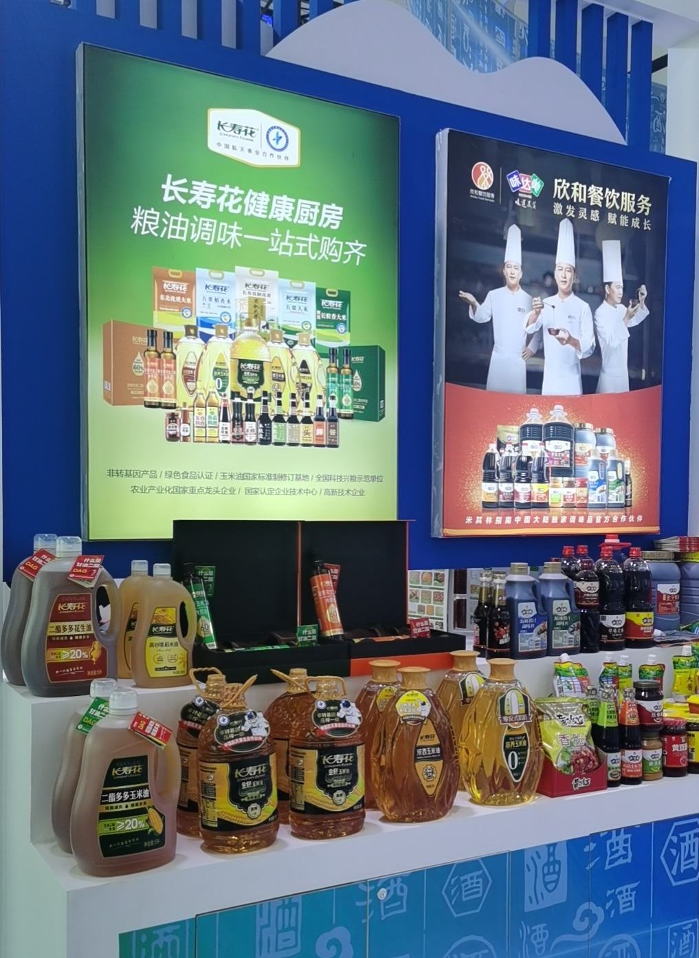 在長壽花食品展區(qū),長壽花二酯系列食用油、長壽花濃香玉米油、長壽花零反式脂肪高養(yǎng)玉米油、長壽花高谷維稻米油、長壽花金胚玉米油等高端產(chǎn)品以簡約大方的排布方式呈現(xiàn),吸引眾多觀展人員駐足咨詢了解、商洽合作,同時(shí)也吸引了閃電新聞的記者前來采訪。