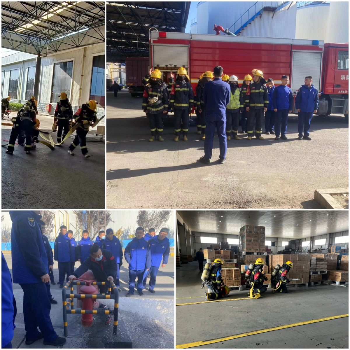 演練前,公司安全負責(zé)人向參訓(xùn)官兵介紹了公司的重點防火部位、現(xiàn)有消防設(shè)施和器材、生產(chǎn)單元分布等企業(yè)安全信息。隨后,在救援隊長的指揮下,參訓(xùn)官兵在包裝一倉庫門口集合,隨著開始指令的發(fā)出,迅速按照救援流程開始救援,根據(jù)職責(zé)分工,前后緊密配合,迅速到達假設(shè)“火情”位置開展撲救,整個演練流程有條不紊,做到熟練、快速、準確。