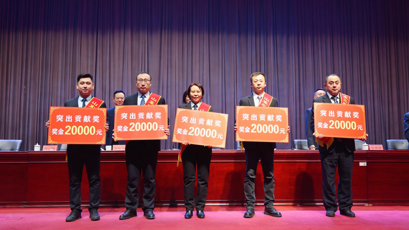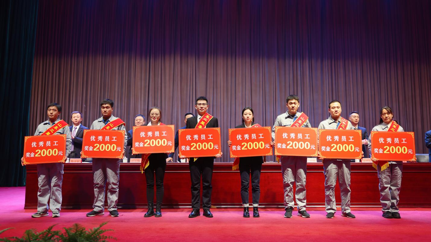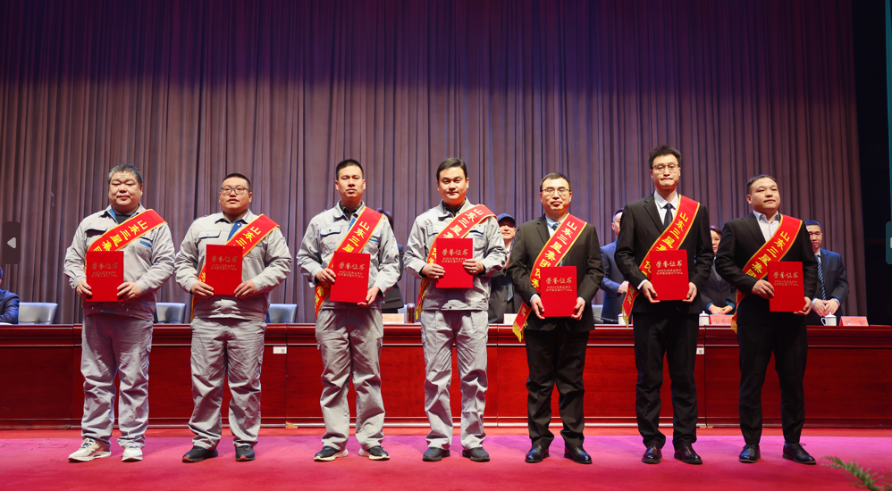 為表彰奮進(jìn)典型,弘揚(yáng)實(shí)干作風(fēng),集團(tuán)常務(wù)副總經(jīng)理王明亮宣讀《關(guān)于表彰2023年度先進(jìn)集體及個(gè)人的決定》,對(duì)安全生產(chǎn)先進(jìn)單位、科技創(chuàng)新先進(jìn)集體、突出貢獻(xiàn)單位、突出貢獻(xiàn)團(tuán)隊(duì)、模范班集體、模范部室及成就獎(jiǎng)、突出貢獻(xiàn)獎(jiǎng)、優(yōu)秀管理獎(jiǎng)、銷售十佳獎(jiǎng)、優(yōu)秀黨員、優(yōu)秀員工及優(yōu)秀新員工予以表彰獎(jiǎng)勵(lì),重獎(jiǎng)2023年在集團(tuán)科技創(chuàng)新、生產(chǎn)管理、營銷拓展、項(xiàng)目攻堅(jiān)等領(lǐng)域的27個(gè)先進(jìn)集體和153余名先進(jìn)個(gè)人。