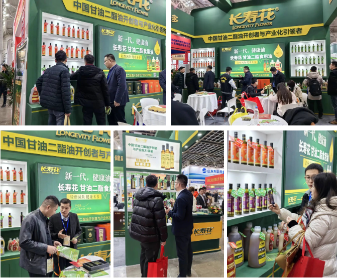 本次展會上,長壽花食品攜甘油二酯全系列產(chǎn)品驚艷亮相。含量從20%——80%的玉米二酯油、花生二酯油、葡萄籽二酯油、菜籽二酯油、亞麻籽油以及甘油二酯黑咖啡、代餐粉長壽花二酯油粉悉數(shù)到場。長壽花二酯油系列產(chǎn)品憑借其高品質(zhì)、大健康等特點(diǎn),吸引了眾多參會客商駐足關(guān)注,蒞臨展位探討合作交流。
