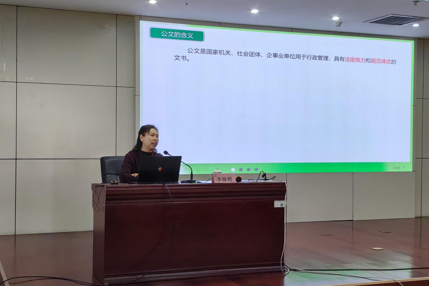 本次培訓(xùn)特邀魯中職業(yè)學(xué)院專職老師授課,培訓(xùn)課程分為商務(wù)禮儀和公文寫作兩部分,張春苗老師為大家?guī)砩虅?wù)禮儀課程,詳細(xì)講解了在接待、引領(lǐng)等商務(wù)交往過程中的待人接物之道,幫助企業(yè)員工領(lǐng)悟如何塑造良好的職業(yè)形象;李海霞老師圍繞公文的分類、公文寫作的規(guī)范及注意事項(xiàng)等方面為學(xué)員們逐一闡述,講授聲情并茂,干貨滿滿,各位學(xué)員認(rèn)真聽講、記筆記,加深了對(duì)商務(wù)禮儀及公文寫作知識(shí)的認(rèn)識(shí)掌握,有效地幫助大家快速提高業(yè)務(wù)接待能力及公文寫作技能。