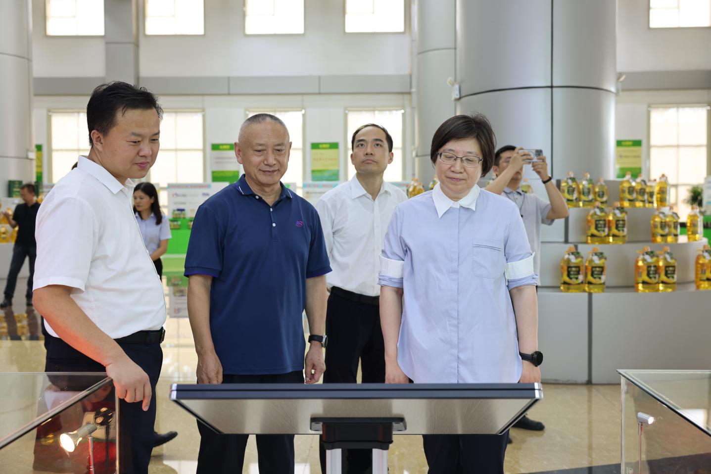 在長壽花食品綠色生產(chǎn)基地,考察領(lǐng)導(dǎo)詳細(xì)了解產(chǎn)能規(guī)模、技術(shù)工藝革新、品質(zhì)控制及市場拓展等工作開展情況,與企業(yè)領(lǐng)導(dǎo)就糧食加工全產(chǎn)業(yè)鏈構(gòu)建進(jìn)行了深入交流探討,對(duì)集團(tuán)堅(jiān)持做強(qiáng)做優(yōu)糧食產(chǎn)業(yè)精深加工、提質(zhì)增效培育新質(zhì)生產(chǎn)力的做法給予充分肯定和高度評(píng)價(jià)。