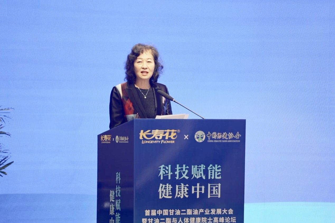 長壽花食品股份有限公司科研中心總監(jiān)王月華做《長壽花甘油二酯油技術(shù)研究與應(yīng)用》主題分享