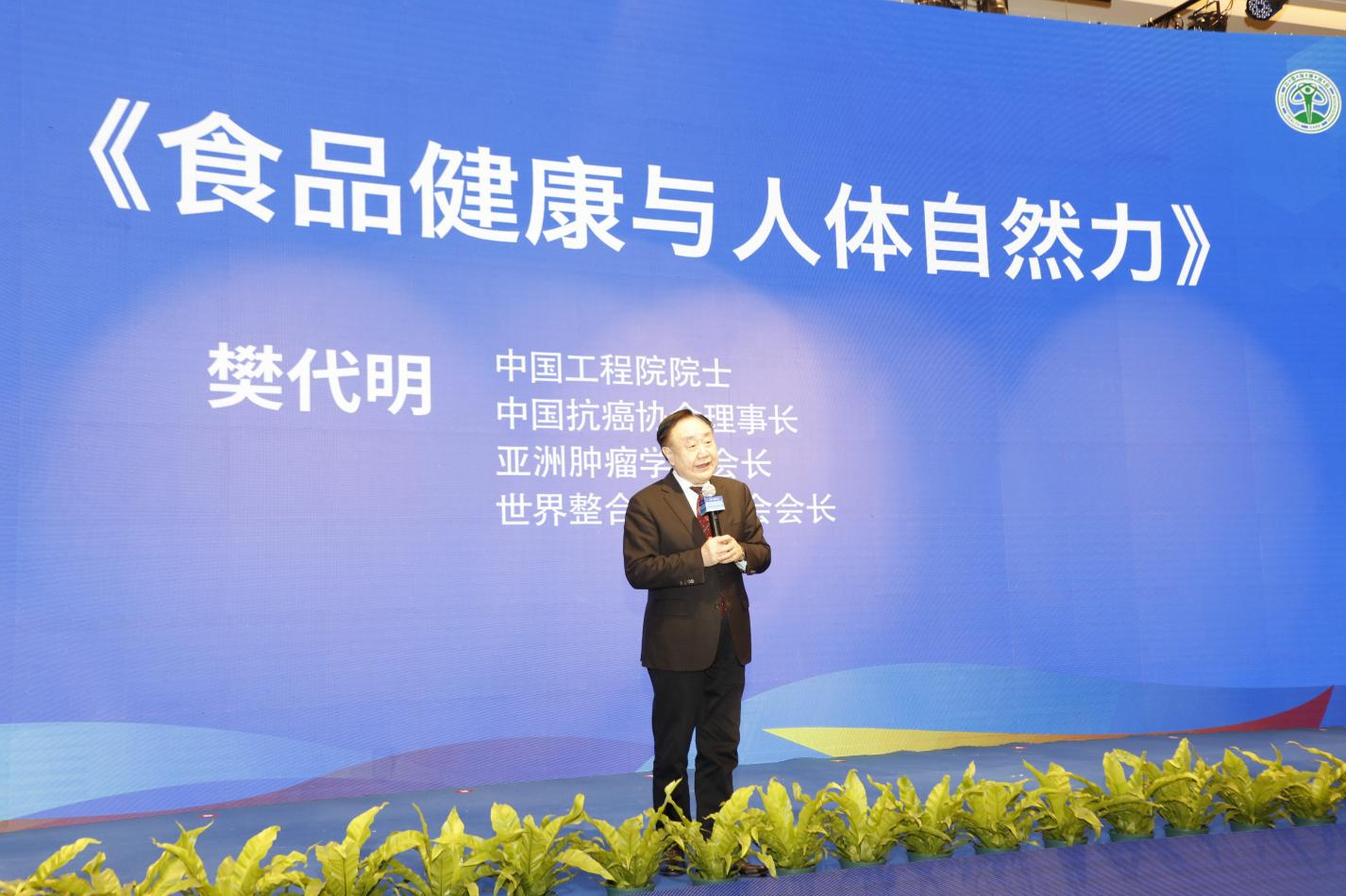 中國工程院院士、中國抗癌協(xié)會(huì)理事長、亞洲腫瘤學(xué)會(huì)會(huì)長、世界整合腫瘤協(xié)會(huì)會(huì)長樊代明做《食品健康與人體自然力》主題分享