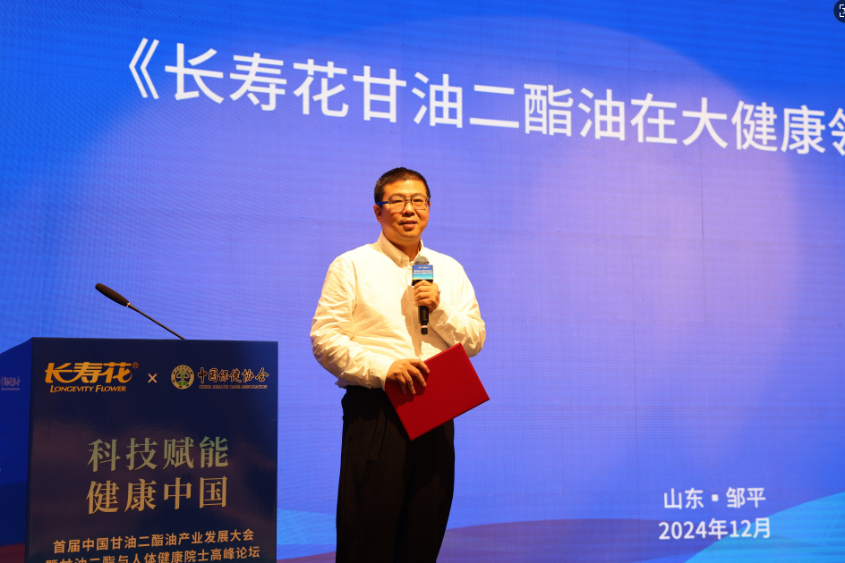 原解放軍白求恩軍醫(yī)學(xué)院營養(yǎng)與健康研究中心主任、中國保健協(xié)會(huì)食物營養(yǎng)與安全專業(yè)委員會(huì)會(huì)長劉天鵬做《甘油二酯與人體健康》主題分享