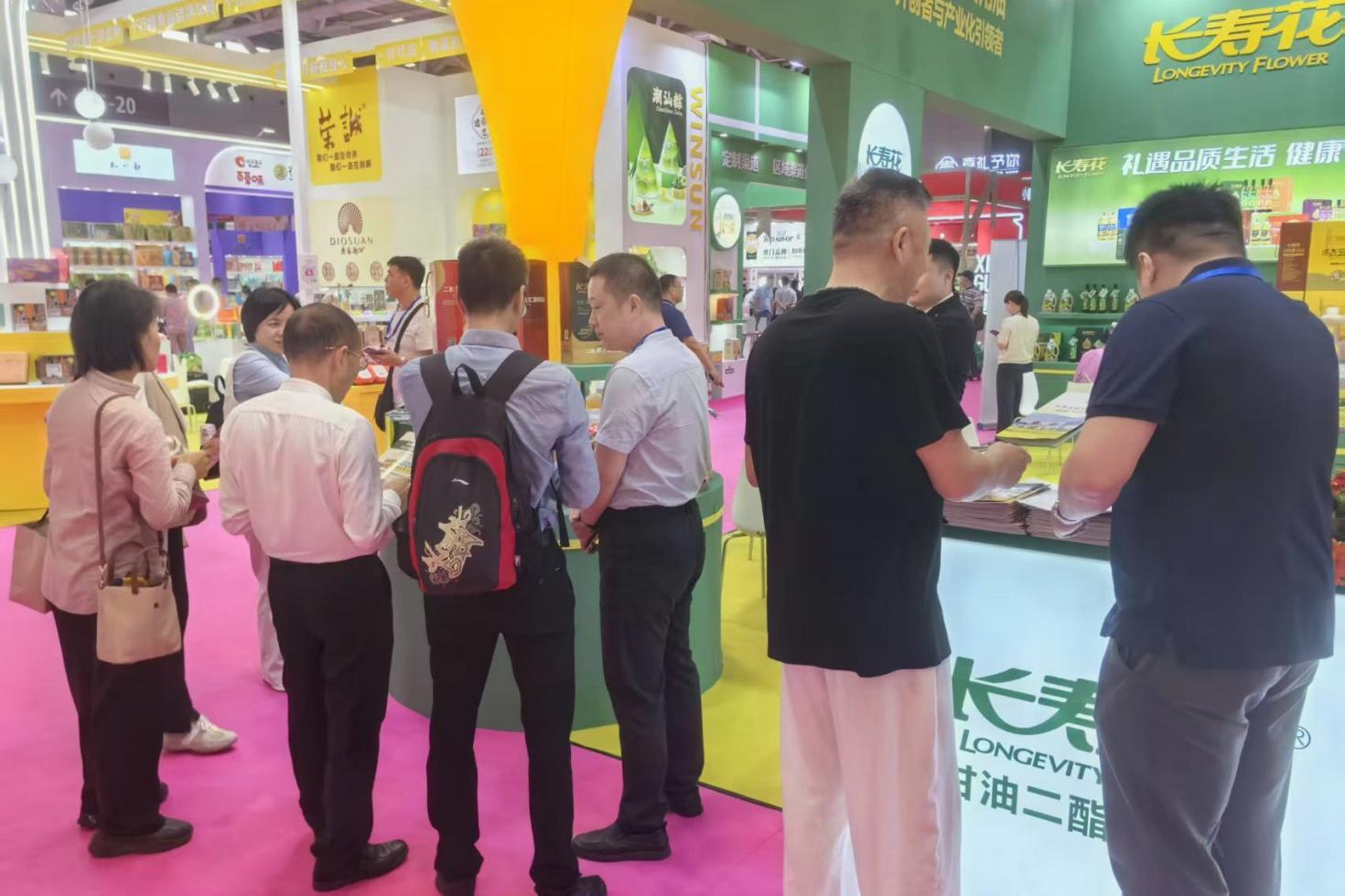 在長壽花食品展區(qū),琳瑯滿目的糧油及功能性食品矩陣,生動詮釋了品牌健康理念與創(chuàng)新研發(fā)實力,吸引眾多參會客商蒞臨展位,交流探討、洽談合作。