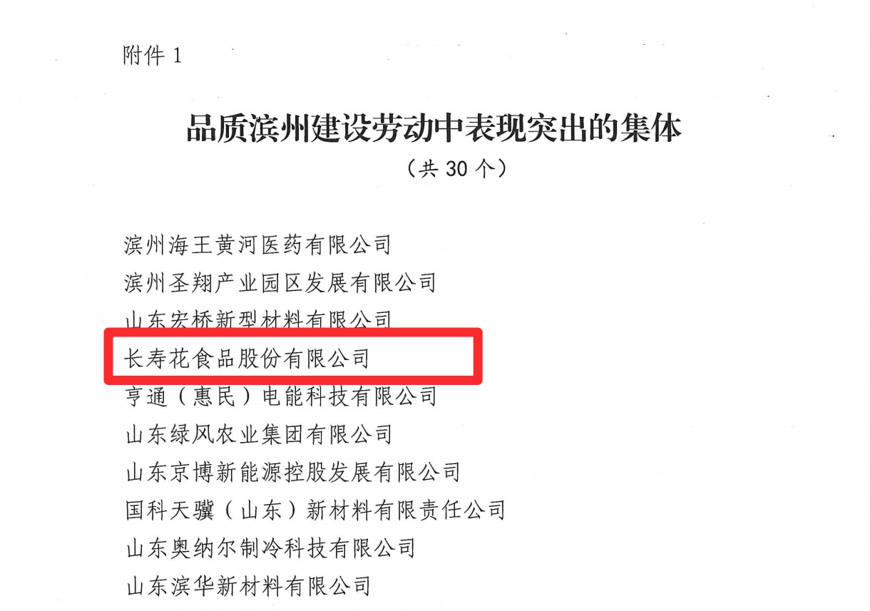 近日,濱州市總工會發(fā)布了《關于表揚在品質濱州建設勞動中表現突出的集體和個人的通報》,對在推動“品質濱州”建設中勇挑重擔、創(chuàng)新實干的先進集體和個人予以通報表彰。長壽花食品憑借在品質濱州建設中的卓越表現和突出貢獻,榮獲“品質濱州建設勞動中表現突出的集體”榮譽表彰。
