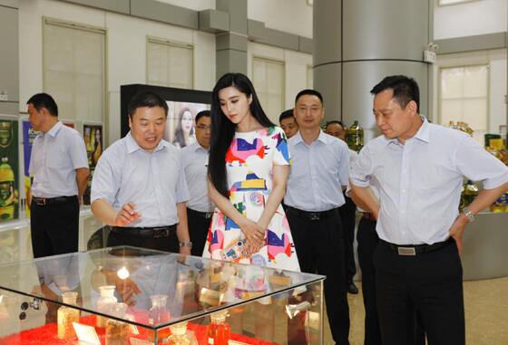 圖為長壽花品牌代言人國際影星范冰冰到長壽花生產(chǎn)廠區(qū)參觀