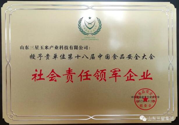作為中國高端健康廚房食品標(biāo)桿企業(yè),憑借在食品安全、科技創(chuàng)新等方面的突出成績,山東三星集團(tuán)再獲多項(xiàng)大獎(jiǎng),旗下玉米產(chǎn)業(yè)公司獲評(píng)社會(huì)責(zé)任領(lǐng)軍企業(yè)、2019—2020食品安全誠信單位、2019—2020食品安全管理創(chuàng)新二十佳案例,山東三星集團(tuán)總經(jīng)理王明星獲評(píng)社會(huì)責(zé)任優(yōu)秀企業(yè)家、食品安全普法先進(jìn)工作者。
