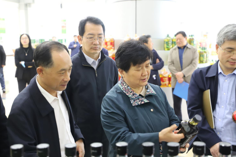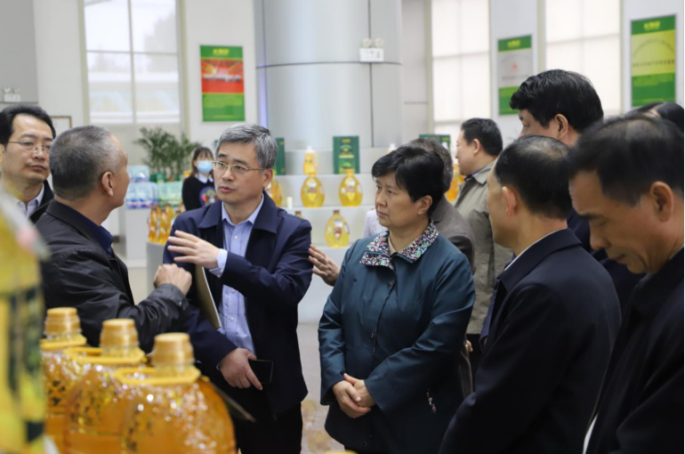 在長壽花產(chǎn)品展廳,楊麗麗一行對企業(yè)在優(yōu)質(zhì)糧油產(chǎn)品創(chuàng)新研發(fā)、糧油產(chǎn)業(yè)健康發(fā)展等方面的經(jīng)驗(yàn)做法進(jìn)行了詳細(xì)了解。