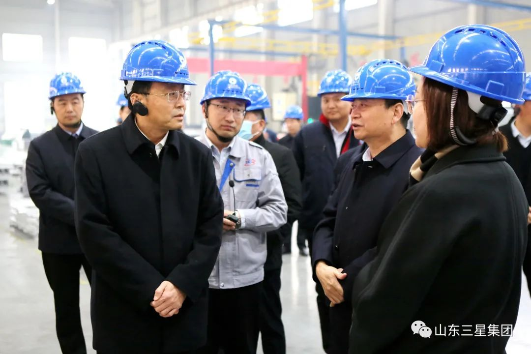 新年伊始謀新篇,領(lǐng)導(dǎo)調(diào)研暖意濃。元月3日,鄒平市委副書記、代市長張謙,市委常委提名候選人、副市長商獻文,副市長郭志偉等領(lǐng)導(dǎo)來山東三星集團調(diào)研指導(dǎo)工作。山東三星集團黨總支書記、老董事長王明峰,董事長兼總裁王亞群,總經(jīng)理王明星,常務(wù)副總經(jīng)理王明亮接待了調(diào)研領(lǐng)導(dǎo)一行。