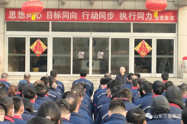 2月7日,農(nóng)歷正月初七,山東三星集團(tuán)開(kāi)工第一天,集團(tuán)黨總支書(shū)記、老董事長(zhǎng)王明峰深入各分公司,開(kāi)講“收心復(fù)位再奮發(fā) 凝心聚力向未來(lái)”開(kāi)工第一課,激勵(lì)全員以堅(jiān)如磐石的信念、滴水石穿的韌勁、舍我其誰(shuí)的擔(dān)當(dāng)力和責(zé)任感投入到新一年的工作中來(lái)。山東三星集團(tuán)各單位全體干部員工整體列隊(duì)、學(xué)習(xí)講話。