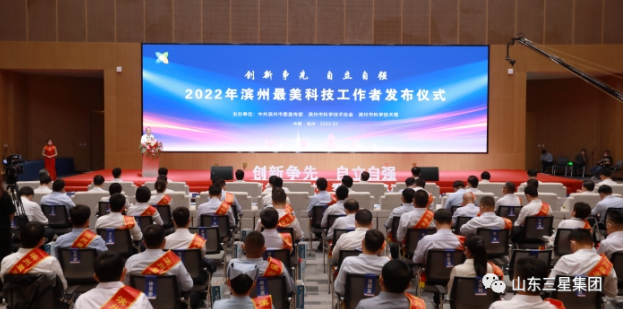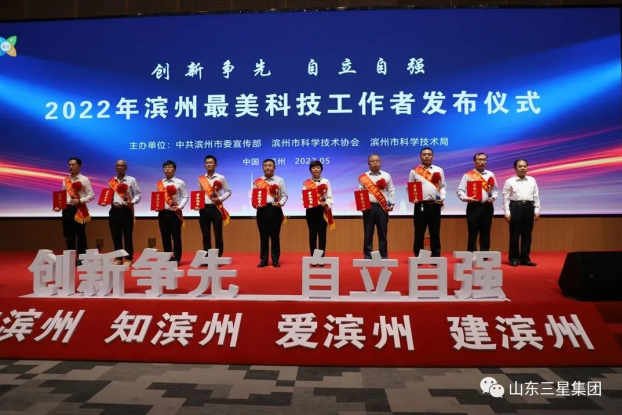 發(fā)布儀式上,秦維強、宋永祥分別為“濱州市金獅獎企業(yè)最美科技工作者”頒獎。山東三星集團旗下裕航合金公司副總經(jīng)理房濤榮獲濱州市金獅獎企業(yè)最美科技工作者榮譽稱號。
