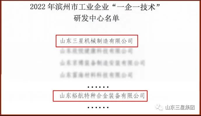 日前,濱州市工信局公布2022年濱州市工業(yè)企業(yè)“一企一技術(shù)”研發(fā)中心名單。山東三星集團(tuán)旗下機(jī)械公司、裕航合金公司順利通過認(rèn)定,在36家入選企業(yè)中獨(dú)占兩席。