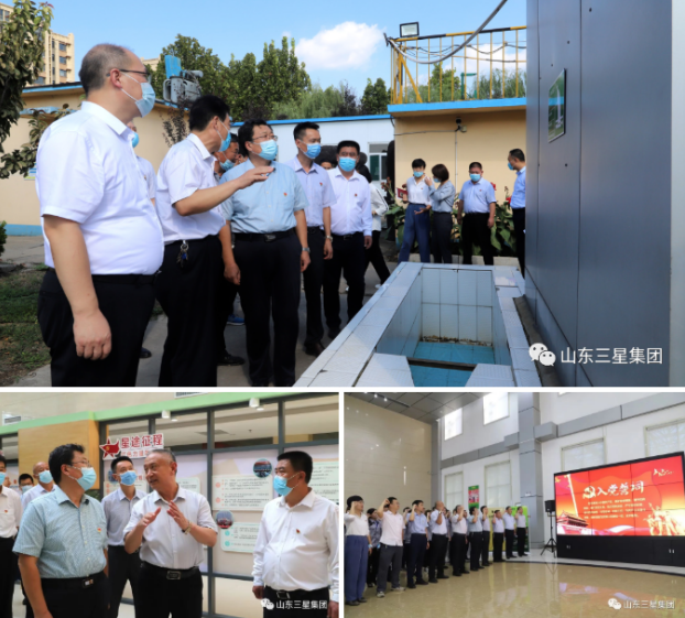 王明峰對(duì)來(lái)訪領(lǐng)導(dǎo)一行表示歡迎,對(duì)各級(jí)黨委政府長(zhǎng)期以來(lái)給予企業(yè)生態(tài)環(huán)保工作的支持表示衷心感謝。他簡(jiǎn)單介紹了集團(tuán)雙業(yè)齊振運(yùn)營(yíng)及黨建情況,并從陣地建設(shè)、人才培優(yōu)、文化鑄魂等方面與來(lái)訪領(lǐng)導(dǎo)分享交流基層黨建成果經(jīng)驗(yàn)。他表示,山東三星集團(tuán)充分發(fā)揮黨總支在企業(yè)發(fā)展中的政治引領(lǐng)作用,把黨的建設(shè)貫穿于公司發(fā)展的各個(gè)環(huán)節(jié),讓“紅色動(dòng)能”活躍于企業(yè)生產(chǎn)管理各個(gè)領(lǐng)域,用黨組織的創(chuàng)新發(fā)展推動(dòng)生產(chǎn)由“制造”向“智造”轉(zhuǎn)變。在生態(tài)環(huán)保領(lǐng)域更是始終堅(jiān)定“為當(dāng)?shù)匕傩諣I(yíng)造良好環(huán)境”的信心和決心,扎實(shí)推動(dòng)黨建工作與企業(yè)綠色健康發(fā)展的共建共贏,夯實(shí)筑牢企業(yè)實(shí)業(yè)報(bào)國(guó)、實(shí)干惠民的奮斗初心和責(zé)任使命。