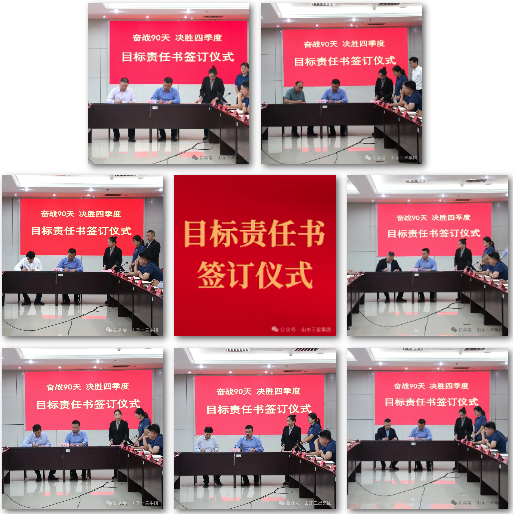 企管部代表集團(tuán)公司與各單位執(zhí)行經(jīng)理分別簽訂目標(biāo)責(zé)任書,許下拓市場(chǎng)、搶訂單、抓生產(chǎn)、求突破的莊重承諾,吹響奮戰(zhàn)90天,決勝四季度的沖鋒號(hào)角。